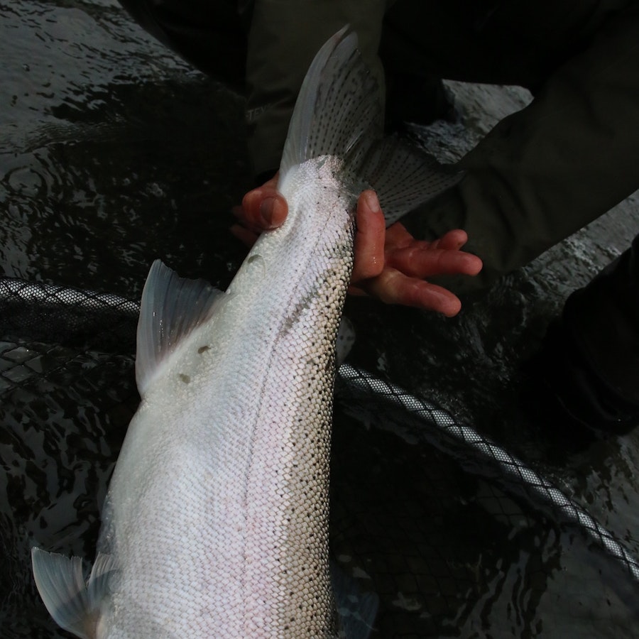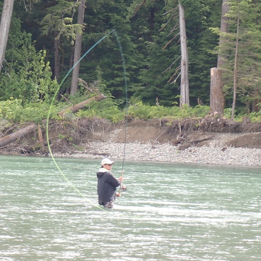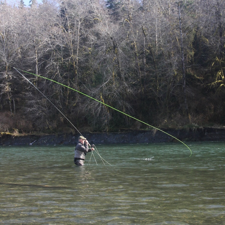 遡上したての魚にアピールする大きめのフライでも、スカジット・メソッドなら安心して投げられます
